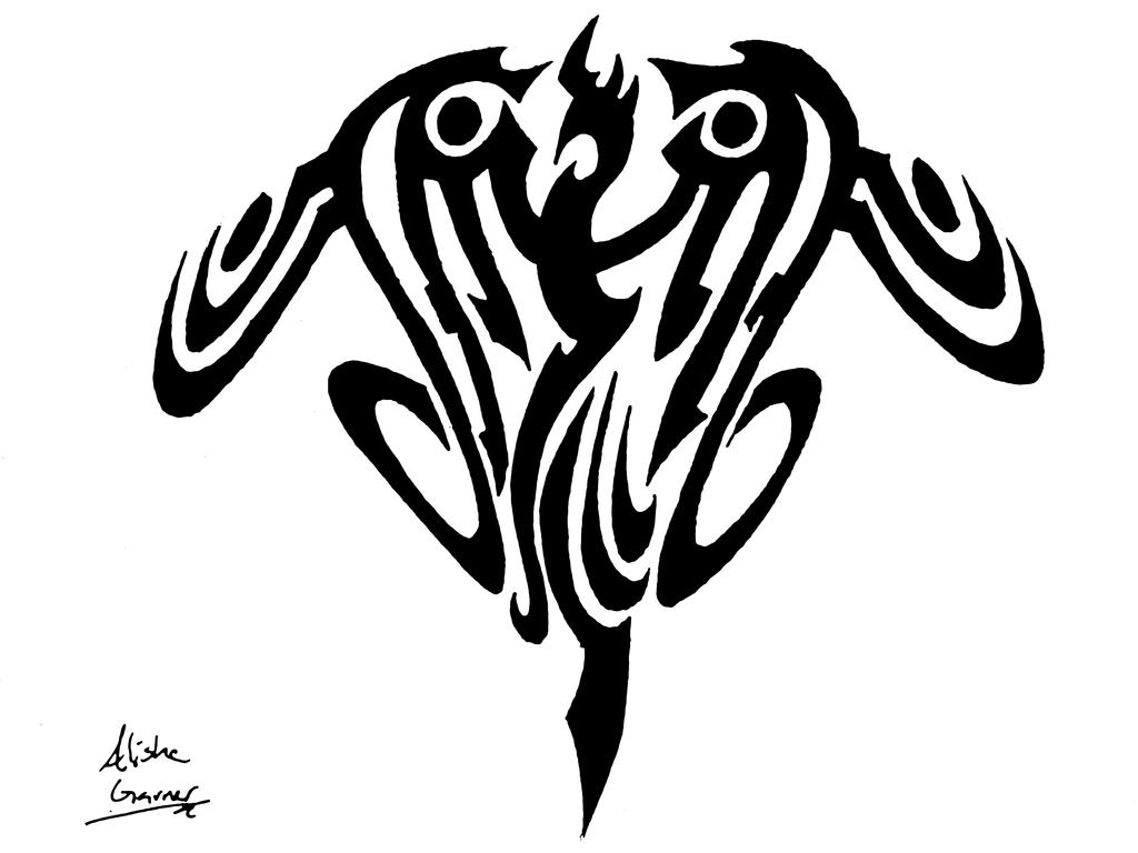 Schwarzes Tribal Tattoo Mit Drachenhorner Motiv Auf Weissem Hintergrund Premium Vektor